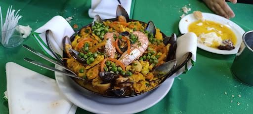 Read moreEs un lugar que ofrece solamente diferentes alternativas de almuerzos, entre ellos pastas, opciones con mariscos y parrillada. Es muy importante realizar reserva previa, ya que se llena el lugar y no es un salón demasiado grande. Llegamos a las 12 del mediodía de un domingo, nos avisan que está todo completo y que recién podríamos llegar a tener una mesa a las 14:30 horas. Aproximadamente en ese horario pudimos ingresar, y la moza nos trae La panera junto a un escabeche de lentejas. De entrada pedimos empanadas las cuales estaban muy ricas, gambas al ajillo y rabas (muy frescas pero les faltaba un toque de dorado a la fritura) Como plato principal pedimos paella y fusillis con salsa de frutos de mar. La calidad de los mariscos es excelente, muy frescos y se los podía ver en las preparaciones en grandes cantidades. Los postres tampoco se quedaban atrás, en mi caso particular me pedí una copa helada, y mis amigos flan y tiramisú. Tienen buenos vinos y gaseosas grandes. Volveremos sin dudas, pero esta vez con...