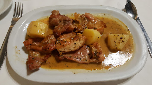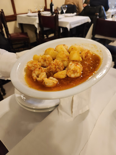 La carta es amplia, aunque ya iba con la idea de comida española. Elegimos de entrada unas gambas al ajillo que estaban increíbles, de las mejores que probé, aunque curiosamente venía con cubos de papa, no me molestó. Pedimos una tortilla a la española medio babé qué estab muy buena. Pedimos de principal, también para compartir, un chupín de abadejo que estaba maravilloso, tenía además del pescado, calamares, arvejas entre otras cosas, la salsa me encantó, así como las papas españolas fritas que coronaban el plato. Las porciones son muy abundantes y con esos platos podríamos haber comido 3 personas tranquilamente. Cerramos con un flan mixto que estaba muy rico.
