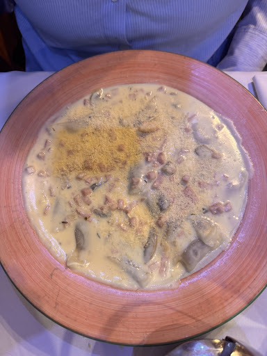 Los cubiertos impecables con sus copas brillantes y servilletas de buena tela. En días festivos adornadas con flores, servilleteros finos, etc. En suma, se advierte un gran esfuerzo en brindar un muy buen servicio y por ende, ello implica un gran costo, que honestamente no se refleja tanto en el precio final. La comida !!! Hay todas las pastas y todas las salsas, los platos siempre bien presentados, manteniendo siempre la temperatura correcta y los exquisitos sabores de manera constante. El chef y todo el personal usan cofia permanentemente ! No se les ve el color del pelo. El menú no es solamente de pastas, sin tener una lista "sábana" cubre todas las expectativas con platos muy, pero muy bien elaborados, con varios tipos de pescados y algunos marscos... Bueno che !!! Vengan a probarlos y después me pegan. "En de mientras" se peinan en el brillo de las limpisinas chimeneas. Y esa limpieza se ve en los baños, fiel reflejo de lo que es el resto. Sin fanatismo, por que hay muchísimos lugares buenos para comer en este gran país que gracias a Dios tenemos, el que meramente les describo es muy bueno. No dejen de hojear la cartita...