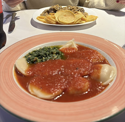 Los cubiertos impecables con sus copas brillantes y servilletas de buena tela. En días festivos adornadas con flores, servilleteros finos, etc. En suma, se advierte un gran esfuerzo en brindar un muy buen servicio y por ende, ello implica un gran costo, que honestamente no se refleja tanto en el precio final. La comida !!! Hay todas las pastas y todas las salsas, los platos siempre bien presentados, manteniendo siempre la temperatura correcta y los exquisitos sabores de manera constante. El chef y todo el personal usan cofia permanentemente ! No se les ve el color del pelo. El menú no es solamente de pastas, sin tener una lista "sábana" cubre todas las expectativas con platos muy, pero muy bien elaborados, con varios tipos de pescados y algunos marscos... Bueno che !!! Vengan a probarlos y después me pegan. "En de mientras" se peinan en el brillo de las limpisinas chimeneas. Y esa limpieza se ve en los baños, fiel reflejo de lo que es el resto. Sin fanatismo, por que hay muchísimos lugares buenos para comer en este gran país que gracias a Dios tenemos, el que meramente les describo es muy bueno. No dejen de hojear la cartita...