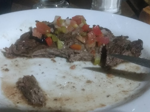 Pedimos la parrilla para 2 personas ($2600 pesos aprox) Nos llevamos la desagradable sorpresa de que la carne estaba recalentada y en su mayoria tibia. La proporcion de asado u otros cortes era escasa al lado de la cantidad increible de achuras. Las dos tiras de asado tenian 2 centimetros de carne al lado de sus huesos, y se encontraba demasiado dura. Solo pudimos rescatar el chorizo y una porcion de asado. Es decir, comimos 300 gramos de asado y un chorizo por 2600+bebida (300-400)+papas aceitosas (600). Cuenta que tuve que ir a pagar a la caja debido a la ausencia de las mozas.
