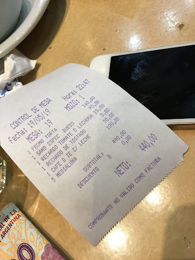 EL LUGAR SIEMPRE ME PARECIO BIEN ATENDIDO SUS MOZOS MUY ATENTOS Y LOS COMENSALES DE NIVEL TRANQUILOMUY RICA LA FACTURA Y EL CAFE, COMO ASI TAMBIEN LOS PLATOS DE COMIDA CON PRECIOS ACCESIBLES. SOLO UN DEFECTO DEJAN ENTRAR VENDEDORES AMBULANTES,, COSA QUE ME AFECTO DIRECTAMENTE A MI EL DIA SABADO 25.8.18 CON UN SUJETO QUE VENDIA MEDIAS Y AL CUAL YO YA HABIA VISTO EN OTRAS OPORTUNIDADES,LLEGADO EL CASO QUE HASTA LE HABIA COMPRADO UN SANDWICHE. ESTABA YO LEYENDO EL DIARIO Y HABIA DEJADO DEBAJO DEL MISMO MI TELEFONO CELULAR. -REITERO DEBAJO DEL DIARIO- ESTE SUJETO ESTUVO UNOS MINUTOS CON SUS MEDIAS FRENTE A MI CARA NO ENTENDIA QUE YA LE HABIA DICHO NO NO Y TENIA UNA BOLSA DE PLASTICO EN LA OTRA MANO LA CUAL REVOLEABA. AL FIN SE RETIRO, INMEDIATAMENTE PORQUE YO YA ME IBA RETIRAR CERRE EL DIARIO Y CUAL MI SORPRESA EL TEL. NO ESTABA. USTEDES TIENEN LA CULPA POR DEJARLOS ENTRAR DIJE A LOS MOZOS Y AL ENCARGADO, LOS CONOCEN SIEMPRE ENTRAN. REALICE LOS TRAMITES DE RIGOR. ASIQUE LES RECOMIENDO QUE SI VAN A ESE SITIO TENGAN CON UNA CADENA SUS...