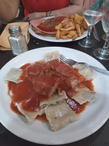 Read moreEl lugar es muy muy lindo. Una esquina relinda. Adentro también está muy bueno. Bien iluminado, lindas mesas y sillas, decoración muy bonita. Ahora, la comida....es muy muy mala. Yo pedí unos ravioles con estofado y mi pareja una milanesa napolitana con papas fritas. La carne del estofado estaba como muuuuy hervida, se deshacía en hebras y al masticarlo parecían fideos pasados, o algo así. El tuco muuuy oscuro, como que le agregaron ketchup. El gusto estaba lejos de ser el de "la abuela los domingos", nada que ver. Los ravioles en sí, estaban buenos. Innegable. La milanesa estaba bastante dura, sólida, compacta...el tuco de la parte "napolitana" era el mismo que mi "estofado", rojo oscuro como sangre de utilería de película de los 70, el jamón y el queso en lugar de estar derretidos sobre la carne, se levantaban en los extremos como alerones...insólito. Y las papas fritas no eran hechas en el momento, dándole a "momento" una tolerancias de....1 hora, ponele. Eran de la mañana, tal vez. Estaba desbordado de gente adentro y había afuera esperando,evidentemente tienen algunas especialidades... Los estofados y las napolitanas con fritas, seguro no lo son. El mozo nos atendió bien,...