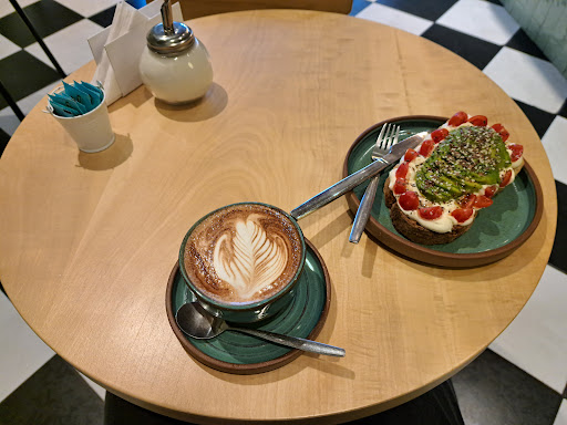 Read moreAgradable lugar y rica comida, precio no tan amigable a mi parecer para una merienda, un café con dos medialunas a $2620 para que tengan de referencia, (que tampoco es un tazón de café). Independientemente del precio, probé el avocado, el tostón de masa madre y los rolls. Para mi paladar, el roll es muy empalagoso, pero ideal para los dulceros, fui dos veces y la segunda redujeron la cantidad de cherrys en el avocado, sin embargo es rico pero siento que faltan un poco mas de cherrys para refrescar el plato, el toston aceptable. La atención adecuada. Desagradable la cantidad de gente que ni $10 de propina dejan. Para probar una cafetería de especialidad no está mal pero en una cafetería tradicional quedas más satisfecho/a y quizás son precios un poco más acorde a lo...