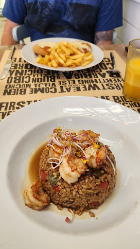Read moreUna pena que un shopping que se ha modernizado un montón, que tiene un patio de comidas como el de Casa Paradiso tenga esta opción mediocre. Hacía rato tenía ganas de ir por la decoración del lugar. Siempre lo veía lleno y me llamaba la atención. Ayer 18/08/24 fuimos con mi familia. Para empezar infringen la ley porque no tienen NINGUNA opción sin gluten. Ni siquiera panera. La milanesa con papas fritas de mi hijo las trajeron tibias. Lo de mi marido también. Cuando pedimos que la calentaran lo hicieron en el microondas...unas papas fritas!!!! Después nos quisieron cobrar cubierto cuando les dijimos que no queríamos panera (a mí que no me ofrecieron opción sin gluten no me cobraron pero a mi marido e hijo que igual no les trajeron nada pero porque no quisieron les querían cobrar). Te dicen que es por el servicio...¿de qué? Individual y servilletas de papel. ¿Por eso? No corresponde. Pedí hablar con la encargada por el tema de las opciones sin gluten y la panera que no tenían y justo no estaba pero las y los meseros me dijeron que ya han recibido MUCHOS reclamos al respecto que transmitieron a la encargada y no hacen NADA. Lamentable. Se los ve bastante resignados a los empleados. Una pena. Para una merienda o desayuno debe zafar pero para un almuerzo no pidan nada caliente. Por lo menos mi ensalada...