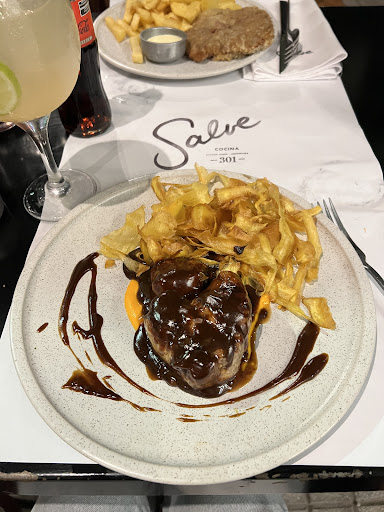 Read moreMuy buena experiencia!! Súper recomendable. El nivel gastronómico que manejan en Salve es impecable… Pero no solo por los platos: Desde que llegas, el recibimiento fue super cordial y amable; lugar muy espacioso. Nos ubicamos en el salón del primer piso (vista a la calle). ¡Nos invitaron copas de bienvenida! El lugar está muy bien decorado (ambiente cálido y cómodo), con música que acompaña para charlar y la limpieza impecable. Nos atendió y “asesoró” muy bien Cristian, lo cual no es un dato menor, ya que no siempre la persona que te atiende, te aconseja con respecto a los platos y las bebidas que se van a elegir. La Entrada que pedimos: Chipirones a la Plancha con Papas Pay: una locura!!!! Exquisitos!!. Platos Principales: Ensalada Castilla (un lujo!). Milanesa de Bife de Chorizo con guarnición de hojas verdes (opcional papas) Risotto del día (era remolacha re cremoso y con una tejita de queso re crujiente) Las materias primas que utilizan, son de primera calidad (no hay duda!) y claramente marcan la diferencia con otros lugares Los puntos de cocción: impecables! (respetaron lo que pedimos). Las bebidas y los tragos, muy buenos y las presentaciones super estéticas!! Tomamos el Salve N°1 (me encantó!), N°2, N°6, Tom Collins y Cynar Julep. Los postres: uuuuuuuuffffffff!!!! Tre- men- dos!!! Pavlova, Lemon Pie y Flan de Dulce de Leche con Crema. Los precios acordes con la calidad de las materias primas que utilizan. Las porciones, razonables. Las presentaciones te enamoran!! Para volver… Muy recomendable!!!! Cada...