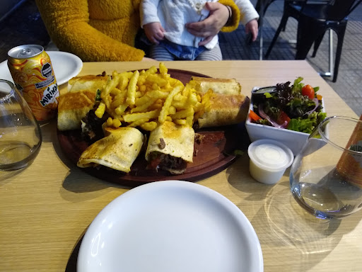 El lugar es pequeño pero tiene 4 mesitas afuera, en cada una se acomodan 4 personas incómodas o dos cómodas. Pedí un combo de dos shawarmas de carne, una porción de papas y dos bebidas (1700$ el 7/2/22). Shawarmas: también había de pollo. Los de carne vienen con mucha carne y un poco menos de verdura (en lo personal creo que ese ratio entre ingredientes queda muy bien), están notablemente especiados (se nota que hay algo más fuera de los ingredientes básicos, seguramente son las especias de la carne) pero no picantes, solo especiado. Además, trae abundante salsa, lo que lo mejora aún más. Papas: también vienen especiadas, las trajeron calientes, crocantes y sin gusto a aceite usado. Las acompañan con una dosis creo que a base de ahí, súper rica. La porción era un acompañamiento que terminó siendo ideal en tamaño, además, porque entre un shawarma y la media porción no te quedabas con hambre. Las bebidas: gaseosas de la línea Pepsi y agua. Es de los más ricos shawarmas que he probado en la cuidad, sin dudas, y ese combo es capaz de aplacar el hambre de dos personas hambrientas pero que tampoco son de comer en exceso. Vi que tenían además otros combos, postres, porciones de arroz persa, y otras cositas que seguro iré probando las próximas veces. Overall: un hallazgo que seguramente pasará a ser de mis...