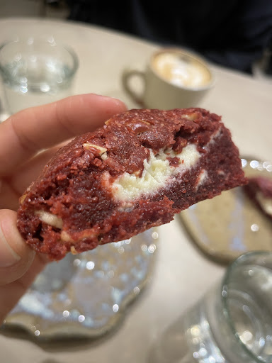 Read moreLlegamos después de ser muy mal atentidas en Demente Café y acá fue todo hermoso: las chicas en la barra súper amorosas nos recomendaron para comer lo que a ellas más les gustaba, a eso le sumamos dos cafés y en 10 minutos nos lo trajeron todo a la mesa. Pedimos una cookie con chocolate blanco y cream cheese, muy rica y dulce. Y una especie de budin con nutela y chocolate que me imaginé que iba a ser más contundente pero igual no estaba mal. El café riquísimo. Se nota que se fijan mucho en lo que pide la gente porque cubren detalles como que cada mesa tiene un cartel que indica que se pide en la caja, así no te sentás y esperás al pedo. Las mesas son muy cómodas y está re bien iluminado. Para un barrio que tiene un café de especialidad por cuadra este está muy muy bien en atención,...