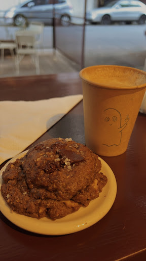 🍪☕️ Pedi un latte pequeño con leche de almendras y una cookie de chocolate con sal marina. Todo estuvo muy rico. Tambien tienen alfajores, budines, pan de queso, variedad de sándwiches y mas cositas ricas saladas y dulces.