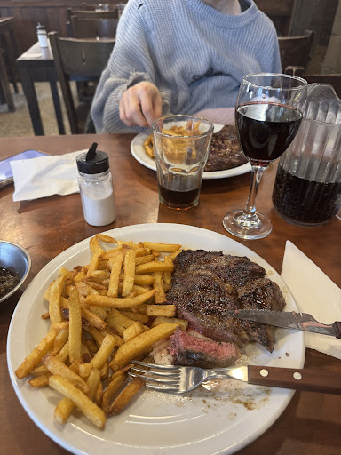 Fui varias a lo largo de los años y ayer me llevé un disgusto. Tienen un menú para una persona que es claro pero otro para dos personas que es engañoso. El de una persona cuesta $20.000 y trae chorizo y morcilla bombón, un corte de carne, una guarnición, una cerveza y postre o café. El menú de dos cuesta $40.000 y debería traer al menos el doble de comida y bebida pero no es así. La entrada decía "chorizo y morcilla" (no decía "bombon") por lo que se entiende que son te tamaño normal como para compartir. No fue así. La bebida para dos fue también una sola lata de cerveza de 475cc. Realmente no está completo el menú para dos personas. Tanto la moza (que está saturada por atender todas las mesas sola y responde mal) y el encargado, se remiten a justificar que cómo es una entrada todo es tamaño bombón por más que no esté así escrito. Espero modifiquen eso en la carta y sumen una segunda cerveza. Gracias