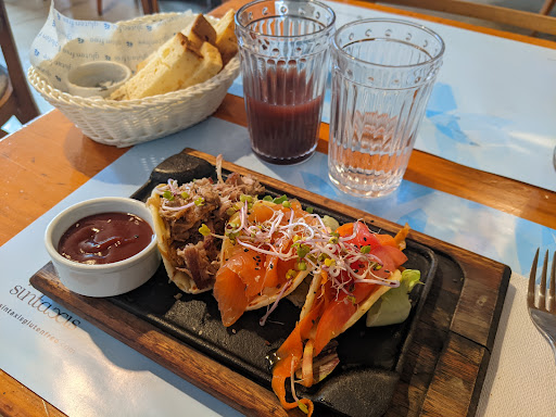 Overall, it's amazing for all celiacs that this place exists! They offer a wide variety of dishes and have a little shop for dried goods and a fridge with empanadas, pizzas etc, all 100% gluten free. However, unfortunately the other reviews I read regarding bad service are correct. I went two times, one time to pick up some takeaway for dinner, and another time to dine in for lunch. Both times the service was unfriendly, almost harsh, and extremely slow. Also, the grilled salmon, and the meat that I had as part of the trio de tacos were both slightly overcooked and a bit dry. The food is by no means bad, it's still very edible and the cakes looked amazing although I didn't try any. But the bad service just taints the experience a bit. I hope they'll work on improving it, because otherwise it's a lovely place with so much potential to be amazing! They accept...