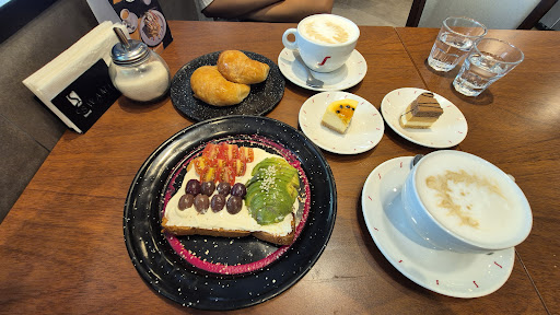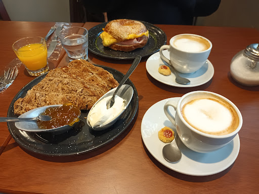 Read moreAhora que tengo una bebé, me encantan los lugares donde te ven a ti y tu esposo entrar con un coche y no les importa ubicarte en una mesa que podría ser para 4 o incluso 6 personas (porque me ha pasado que empiezan a mirar porque les estorba y demás). Y en este lugar desde q entré, el mesero un chico muy joven nos ubico de una, se preocupo por el coche que nosotros mismos, desde ahí ya se ganó mi corazón jejejeje. Bueno ahora al grano, más allá de ese detalle; la comida y los precios excelentes, tenían varias opciones de combos para desayunar/merendar y otras opciones individuales. En nuestro caso pedimos 2 combos (café con leche + tostadas + jamón + queso+ jugo de naranja, cada uno por 5.600) q si nos hubiéramos quedado ahí, hubiesen sido 11.200; peroooo como nos gusta probar cosas nuevas, nos pedimos un sanduche de chipá relleno de salmón, que valió la pena de principio a fin (super recomendado) por 11.000, y tienen otros rellenos más económicos. Sin...