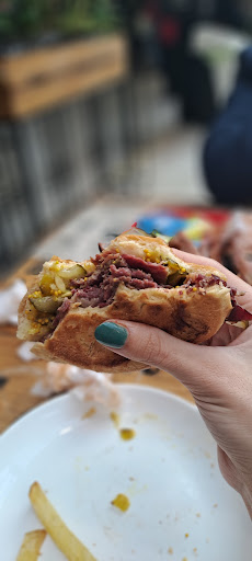 Salimos a dar una vuelta por Belgrano. Mil que no pasamos por aquí . Mercado de Belgrano. Taproom. Me llamo la atención las bebidas muy buenas .Atención encantadora del muchacho de la caja la cara visible , no veníamos Precio ,importante. Pregunta nos nos explico todo, obvio no era desición de él; pedimos algo simple hamburguesas papas y Antares playa grande. Se veía movimiento ,indicio de que saldría todo en el momento o sea espectativas de que sería bueno. No soy de las hamburguesas!! Cero hamburguesas. Pero al leer ahumadasme tente. Clásicas con cebollas caramelizadas, beicon abundante cosa que en otros lugares los ves con lupa. Excelente la hamburguesa. Nada decir y el pan también . Las papas las de arriba muy bien rústicas finitas .abajo ya no tanto .blandas y oscuras. Muy saladas para mí gusto. Antares como siempre fiel. A precio. Diría 2 $1.640 comería mejor al mismo precio en otro lado . Si!!!! Pero queríamos algo rápido y simple. Le puse 4 estrellas porque el chico se llevó 2 estrellas y 2 la hamburguesa. Recomendable...