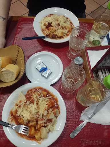 Cuando vimos el plato eran ñoquis como los que podría hacer yo en mí casa con el menor conocimiento, y eso que hice ñoquis varias veces. Pero porque ofrecer un plato que ni siquiera se ve bien. La masa se veía gris, parecían cortados a cuchillo o algo así, no tenían forma ni líneas de ñoquis, como hechos sin mayores intenciones que de cobrar por un plato que no decía nada. La salsa filetto no tenía cebolla, hasta donde se debería llevar cebolla. Tenía sabor a las salsas que compras en el supermercado, las que vienen listas, le faltaba cocción. Ñoquis con salsa incluida 9500. Supongo que no se debería pedir mucho por ese precio, por lo que no esforzaron en el que plato se vea y sea apetitoso. Comimos ñoquis mejores por el mismo valor.
