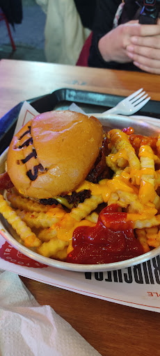 Read moreViernes 19 hrs. Fui con muchas expectativas, ya que dicen en muchísimos lados que es la hamburguesa más rica de todas las cadenas de hamburguesería del país. Realmente esperaba mucho, pero mucho más: no sorprende para nada. Me pedí una con queso, normal, tenía gusto a paty de McDonalds (que me gusta, pero no fui con la idea de comer eso), la calidad está bien, pero no sorprende para nada. No había nada destacable. Me la pedí así de tranqui precisamente para distinguir mejor los sabores, y no fue así. Mi pareja se pidió una con manteca y cebolla: cebolla casi no tenía y, como van a poder ver en las fotos, la manteca vino sin derretir, en un bloque. Tuvo que desarmar la hamburguesa y ponerse a untar. Solemos comer hamburguesa con manteca en otras hamburgueserías y jamás viene así: viene derretida, calentita, perfecta untada en el pancito y con la cebolla. Las papas no me gustaron. Muy gruesas, con la forma de gusanito. Ah, y para los que manijean con el condimento de las papas, que hasta se los compran a los del local, les cuento: es pimentón ahumado con ajo en polvo, nomás. Y mucha sal, estaban tan saladas que me quedó ardiendo la punta de la lengua. La calidad, en general, está bien, pero nada más. No sorprendió para nada. Precios elevados. Lo único que destaco es la variedad de hamburguesas que tienen, incluso algunas con queso brie. El lugar no es lindo, ni cómodo. Parece un viejo almacén de chatarrería. Estilo de paredes sin revocar y hasta azulejos sin poner pero a la vista de todos, como obra en construcción que quedó a medio hacer. La música es infumable, reggaeton y cachengue en volumen 5000, insoportable. Entiendo que es por la zona, el día y hora (a modo de "levantar" la noche y "previar", y por el tipo de gente que va a ese lugar, pero es incomodísimo intentar comer tranqui y disfrutar la comida en un lugar así. Está lejos de ser la mejor hamburguesa y...
