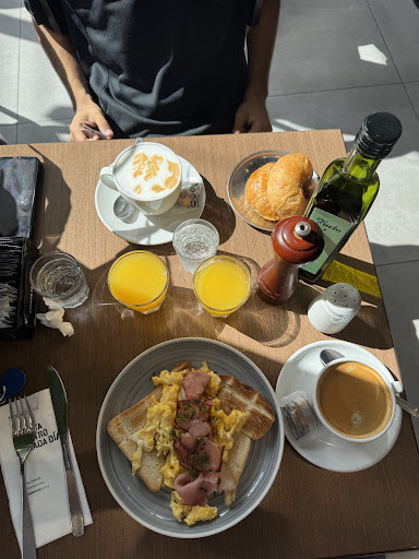 Mi familia se pidió el brunch que tiene mucha variedad de cosas, ese estaba bueno (yogurt con frutas, scon de queso, un tostado tipo hamburguesa con panceta y huevo, una medialuna con palta y huevo arriba y no me acuerdo que más).