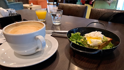 Read moreHoy almorzamos en tienda de café, proponian 6 o 7 opciones de menú del día, decidí por unos canelones de verdura y salmón con salsa blanca y salsa fileto, cuando llegaron en una cazuela de hierro y puede apreciar que estaban ausente de salsa y secos como verano sin lluvia, al probarlos estaban tibios y por partes todavía congelado, ademas de descubrir que eran realmente de verduras con unas chispas de salmón, salados x demás, al llamar a la camarera le explico que había partes que todavía no se habían descongelada y que por favor le agreguen salsa porque estaban secos, a lo cual me contesta que son viandas ya preparadas que solo ellos se limitan a calentarlo. La verdad que cobran un menú de cualquier restaurant de muy buena calidad, mejor les sugiero que se dediquen hacer café que x otra parte parecía tinta china, nunca más se me ocurriría volver, tremenda experiencia, mi señora pidió una hamburguesa de porotos aduquí que venían con unas papas imposible de comer por lo seca y duran qué estaban. Esto de recalentar la comida no funciona a estos precios. Evidentemente no existe la cocina ya que no pueden resolver cosas básicas del menú del día, no pudieron resolver una salsa blanca x falta de cocinero, una verguenza, espero que achiquen la carta y ofrecer solo sándwiches y dejen de engañar con sus...