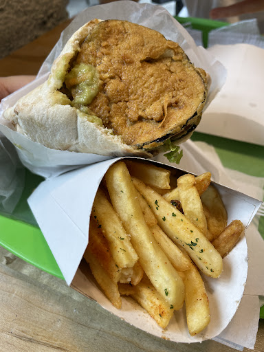 Read moreCuando lo conocí no me convencía mucho, ofrecía una carta extraña (que nunca había probado) y se me daba como que no me iba a gustar. Eso fue el año pasado aproximadamente. Me equivoqué. A veces tenemos que salir de nuestra zona de confort. Si hay algo que me gusta mucho, es arriesgarme y probar cosas nuevas, y más si se trata de la gastronomía, así que dije, ¿por qué no? Se ve super apetitosa toda la comida y re saludable. Saludable no es sinónimo de insulso y con poco sabor. Cuando me enteré que hacían falafel y hummus me volví loca, tengo una importante obsesión con la comida oriental, de verdad. Obvio que le di una oportunidad, BASTA DE MC, burguer, KFC, o starbucks incluso, porque esto es una BOMBA. Distinto, delicioso, no te escatiman en NADA porque literal te rellenan ese pan pita (casero) hasta explotar de todas las verduras que quieras y el falafel. También podés elegir las salsas (TODAS si querés, esto no es subway tampoco), y hay miles de combos, los precios son súper económicos, y ENCIMA te pedís una limonada bien original (con limón, menta o de manzana y no recuerdo qué otra cosa más) y una porción de papas fritas SUPER especiadas y riquísimas (con más salsas que quieras también!) o mejor aún, con una ensaladota como la que me pedí. Llevé a mi hermana conmigo porque a los que los había invitado no les convencía, y mi hermana me hizo el aguante y me agradeció que la haya invitado, porque NOS ENCANTÓ la comida y encima nos atendieron súper bien. Mil puntos para comer algo rico, re nutritivo, diferente, bien original, como si estuvieras en el oriente probando esa gastronomía picante y especiada que tanto se destaca, en pleno microcentro y encima, no te arrancan los bolsillos de los pantalones. Se los recomiendo, es ideal para los vegetarianos y veganos apurados también. Si van, prueban y me cuentan, a...