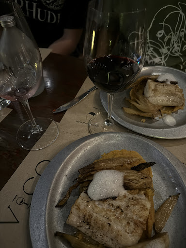 Read moreComo puntos a destacar: el lugar muy agradable, con las mesas separadas. Si bien las sillas que nos tocaron eran altas (cosa que no me agrada en lo personal), al tener respaldo eran cómodas. Muy buena atención de los mozos. La comida era muy rica y muy bien combinados los sabores en el plato. Buena variedad de vinos, siendo la mayoría etiquetas que no se encuentran en restaurantes o supermercados. También es bueno poder tomar por copa para probar más variedades. Como puntos en contra: Las porciones de comida eran muy pequeñas (eso de raciones o porciones que pusieron en otros comentarios viejos no está en la carta) pero con precios elevados (no serían caras si no fueran tan pequeñas). Yo hubiese estado bien pidiendo dos platos principales. El postre también rico pero igualmente poco abundante. De los 3 postres distintos de la carta uno no lo tenían (justo el que había elegido) así que queda muy poca variedad. El precio del vino es bastante elevado (50 ml de vino -un cuarto de vaso- va desde $150 a $400; una copa de 150 ml va desde $400 a $855 aproximadamente). Si bien en este lugar se pueden probar varios vinos, pedir una botella en cualquier otro restaurante es mucho más económico. Además te cobran servicio de mesa pero no te traen nada para picar antes de la comida ni algo que lo justifique. Por último al consultar a la somelier por un vino para acompañar mi plato me contesta preguntando por que uva me gusta y solo me recomienda el vino más caro de esa uva cuando yo buscaba que ella me diga que uva maridaba mejor con el plato. En resumen el lugar está bueno para una experiencia distinta. No me arrepiento de haber ido pero no volvería a menos que disponga de muchísimo dinero para no tener que limitarme por el elevado precio de la mitad de las etiquetas. Es importante reservar, incluso entre semana. Si son de buen comer vayan después de haber comido en casa o...