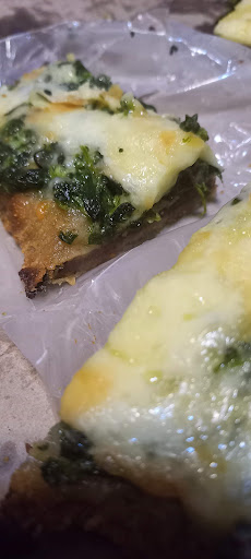 Tortilla de papas del tamaño de una mano,semi seca con sabor a nada con 1 feta de queso de maquina x arriba y chimichurri $1450