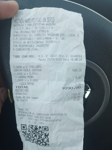 Read moreUna vergüenza! Hacen publicidad criticando a la competencia y son iguales o peores. La imagen de la hamburguesa que tienen en el local como publicidad a 109 pesos...es irrisoria cuando vez lo que te dan. Una mini hamburguesa doble claro...pero lejísimos de la realidad. Una burla para los clientes. Es como pedir un tomate y que te den un cherry. No podes propagandear criticando cuando sos peor. "No te comas el...