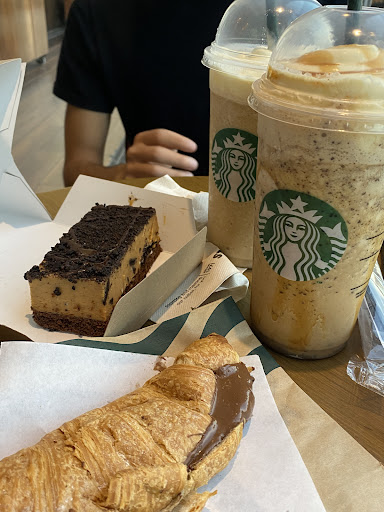 Read moreMuy lindo el lugar para sentarse a pasar el rato, me habré quedado unas dos horas charlando, al caer la tarde/noche se vacía y se puede estar tranquilo. Durante el día no queda otra que hacer fila, 10 mins aprox entre compra y entrega. Recomiendo el frappuccino chips de chocolate, muy rico! Los postres no los pobre, parecen de plastico, muy lindos a la vista pero demasiado caros! La atención esta bien, las mesas y el lugar en general estaba limpio. Quiero destacar a una de las chicas que escribia tu nombre con una caligrafía hermosa! Lastima que no me toco a mi adgsfs 😔