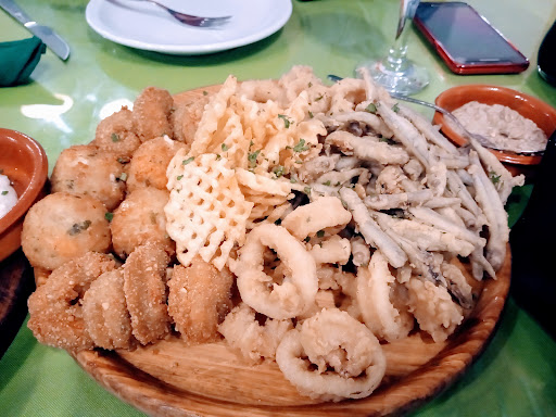 Read moreFuimos dos matrimonios a comer una picada de mariscos, (pedimos dos porque cada una es para dos personas), lo hemos hecho varias veces en el lugar pero, esta vez fue decepcionante. Hay dos tipos en la carta, tomamos la especial porque traía como diferencia langostinos empanizados, pocos por cierto. Cuando llegó a la mesa la vimos abundante, sin embargo la gran mayoría estuvo basada en cornalitos fritos que descansaban sobre unas papas rústicas, que en nuestro caso estaban quemadas sobre todo las hierbas (probablemente por sobrecalentamiento). Había rabas, cuatro albondiguitas de pescado, unas pocas aletas de calamar en escabeche y mejillones al ajillo; estas dos últimas pasadas de aceite y sin sabor. La verdad es que el precio habla de lo que uno va a comer. No es cara, pero la calidad es mala. Estaba acostumbrada a otra cosa. Pedí si podían cambiar los cornalitos-ya que a ninguno de los 4 nos gustan- y me dijeron que eso incluye el plato y ni aún insistiendo con que nos den menos de alguna otra cosa en compensación lo logramos. "Es orden de arriba" nos dijo el mozo super atento y dispuesto cada vez que lo solicitamos. A mi entender tendrían que tener una opción más cara y que sea el consumidor quien decida si la toma o cambia...