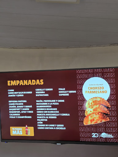 Read moreOfrece empanadas y burritos muy ricos y variados. Los precios son algo elevados pero la calidad lo vale. La atención es rápida y el pedido sale en aproximadamente 15 minutos aun con buena cantidad de demanda. Ofrece bebidas variadas para comprar ahí mismo. Tiene sillas para esperar a pesar que el local sea pequeño. La confección de la comida esta a la vista, separada por un cerramiento de vidrio, demostrando la...