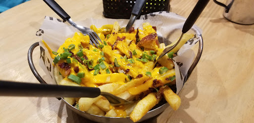 Cómo variedades hay solamente hamburguesas, papas fritas, bastoncitos y demás, hay opciones veganas pero solo para las hamburguesas, lo cual es un problema, ya que todas las bandejas de papas (que compras por separado) tienen queso cheddar Me gusta mucho que las hamburguesas SIEMPRE incluyen papas y estas vienen ya saladas en primer lugar, algo que tener en cuenta si tenés problemas de presión o si tenés la mala costumbre de primero tirar sal y después probar si ya tenía Las variedades de hamburguesas son amplias a buen precio también y voy a admitir que hasta la fecha, son LAS MEJORES hamburguesas que probé de un local de comida rápida, totalmente recomendable el lugar en un horario con poca gente o si no también hay servicio de delivery Hay mesas de afuera, pero es más para estar parado y si hace demasiado frío realmente no vas a querer salir afuera En conclusión, al menos venir una vez a probarlas, vale la...