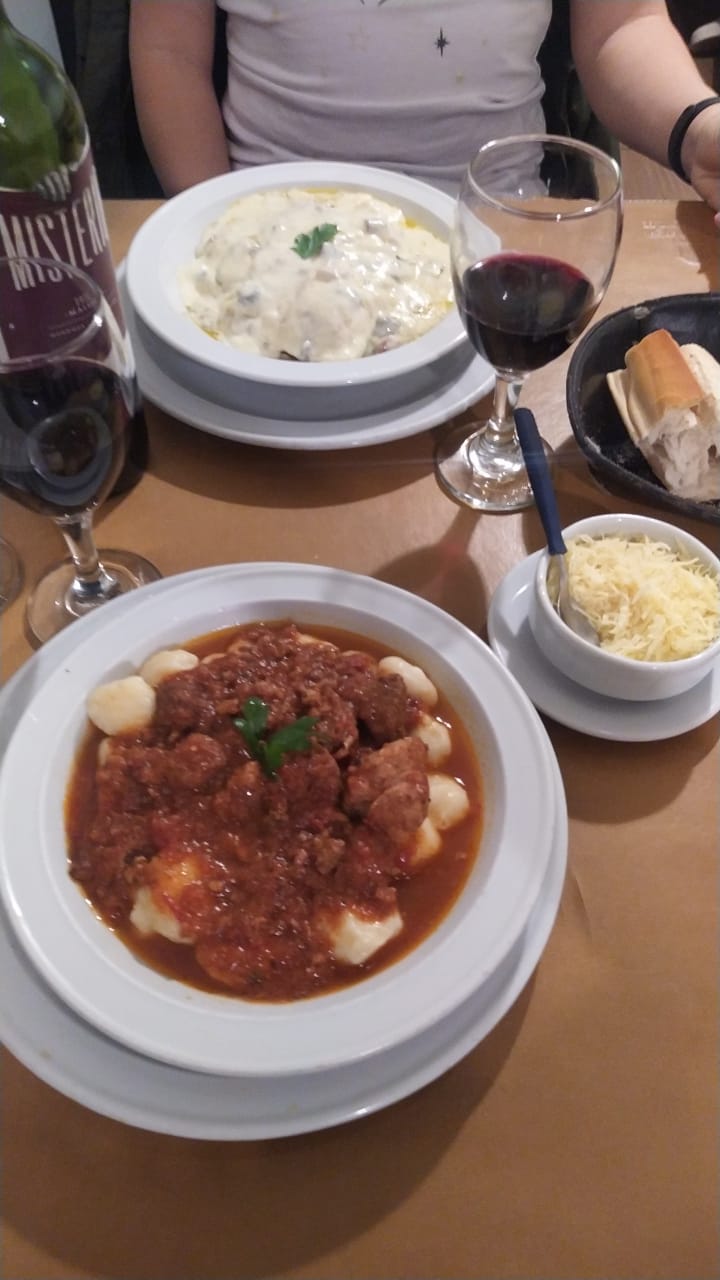 La comida esta ahí, nada especial. Pude probar una bondiola con unas batatas fritas, las cuales estaban bien, pero la carne estaba pasada de cocción, en sectores literalmente quemada; eso en conjunto con una salsa al jerez con exceso de salsa de soja, es decir, hiper salada. Otro plato fueron los canelones que, estaban bien hechos, pero con una notable falta de sabor. Por último para el postre compartí un tiramisú, que estaba rico, un poco flojo en la consistencia, pero sabroso.