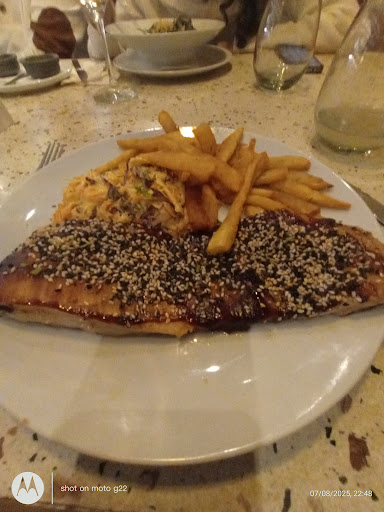 Read moreEl ambiente es muy agradable, buena decoración. Reservamos para cenar, llegamos y el camarero que nos recibió muy amable. Las bebidas tardaron media hora ( agua y gaseosa) y 10 minutos más el trago. La entrada 20 minutos más. (1 Provoleta y fish and chips). Los platos principales un montón. Llegamos a las 21.00 y salimos casi a las 0.00 hs. La comida muy rica, aunque el matambrito con las papas estaba un poco frio y los pintados un poco aceitosos. El tamaño de los platos bien y acordes a los precios. El destacar el tiempo es porque el camarero que nos recibió era el que tomaba los pedidos, juntaba las mesas, llevaba los platos, cobraba. Había dos personas en la barra haciendo casi nada, es más uno estaba preparando un trago y el le explicaba como hacerlo. En resumen creo que le faltaba cocinar y hacía todo. Pero creo que la demora de los platos más allá de estar solo en la cocina también tardaban. Creo que eso...