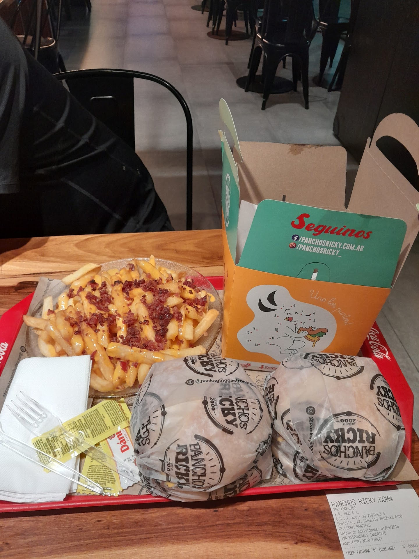 Read moreHoy fui almorzar cn mi hijo de diez antes de llevarlo al colegio....espere que la cajera se dignara a dejar el celu para atendernos. ..pido dos panchosy dos cocas Después de 20 minutos me aproximó ala caja y se habían olvidado,cuando me lo entregan las salchichas estaban frías y cuando quiero darle el pancho a mi hijo se desintegró el pan X completo quedando la salchicha cn los el queso y las papas desparramadas en la bandeja ,ya re enojada y directamente pido que se me reintegre el dinero .y pido libro de quejas (no tienen!!!!!) Me reintegrar el dinero y la cajera me dijo te descuento la coca que tomo tu nene !!!!! Le contesto X supuesto no quiero que se fundan X mi culpa !!!! Conclusión pésima atención y pésima la comida !!! Teniendo en cuenta que tienen a burguer en frente y Mac donald en la cuadra ...deberían ser más cuidadosos X la competencia pero nos le da ni...