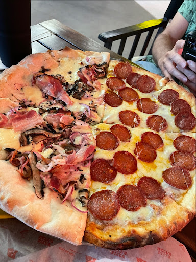 Pésima atención; no recomiendo esta franquicia, siempre hemos comido en otros hells pizza y pedimos mitad de un sabor y mitad de otro nunca tuvimos problemas except esta franquicia que a toda costa nos quería vender la pizza que le quedaba en el mostrador, yo pedí una pizza recién hecha y me dijeron que como era mitad y mitad me la hacían. En cuanto pague y me di vuelta me estaba preparando la mitad de una de las que estaba en la vitrina. Cómo era de esperarse la pizza salió horrible porque era súper recalentada. Para comer pizza recalentada y berreta comía en cualquier otra pizzería trucha una vergüenza que esto suceda en HELLS PIZZA. Nunca más volveré a este lugar En la fotos se puede notar la pizza recalentada y la otra. Después de que hablé con el encargado quiero destacar y agradecer a Javier dueño de la franquicia que se acercó a hablarnos y pedirnos disculpas ; de hecho nos ofreció una pizza nueva pero con agradecimiento le dijimos que no; y nos termino regalando un postre. Para mi estos hechos valen mucho más que la...