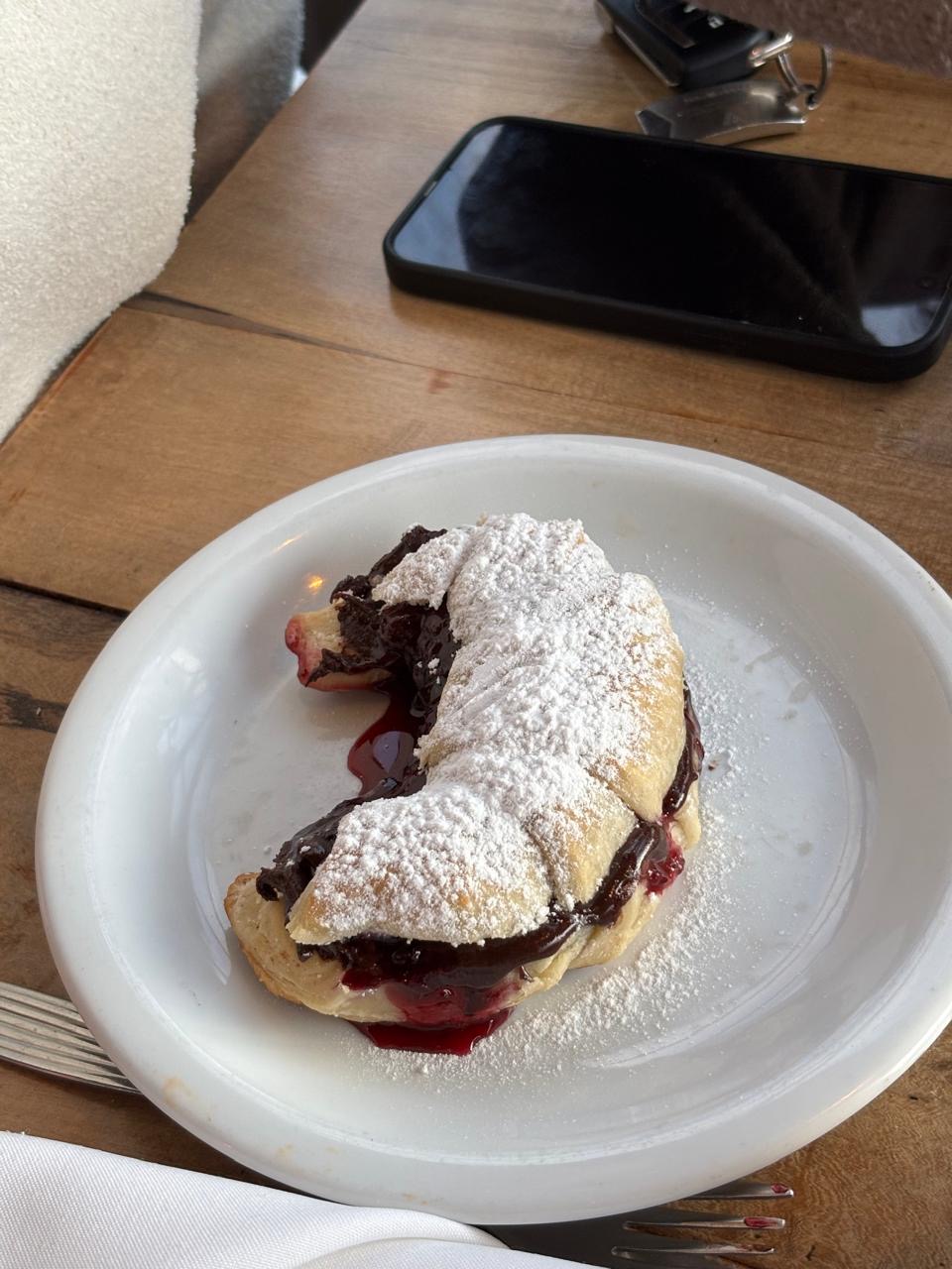 Read moreVinimos a merendar, éramos la única mesa y tardaron un montón en atendernos y traernos el pedido. Eran unas medialunas de jamón y queso y un waffle frutal, el waffle decía: ganache de chocolate, frutas de estación, dulce de leche y crema, el waffle no sólo vino re duro como si lo hubiesen descongelado y puesto lo demás arriba. No estaba caliente, costaba cortarse y no sólo eso sino que también tenía un dulce de leche de calidad media a baja, con solo mango naranja y banana como frutas de estación, obviamente no había ganache en el waffle, sólo una salsa que compras en el supermercado. Mi novio pidió un café con leche con medialunas, las medialunas estaban bien por eso las dos estrellas pero es algo que tranquilamente las piden y calientan y ponen jamón y queso. No nos dieron cuchara solo palitos de plástico como cucharas. Nos cobraron: 500 el waffle. 220 el te con leche y 300 un café con leche en tasa chica, y las medialunas 200. Creo que en otro lugar por esos precios nos daban mejor calidad y atención, no nos pareció caro pero en otros lados, la calidad es más elevada por el mismo precio. Los empleados desganado para atender. Una lastima porque fuimos a cenar antes y había...