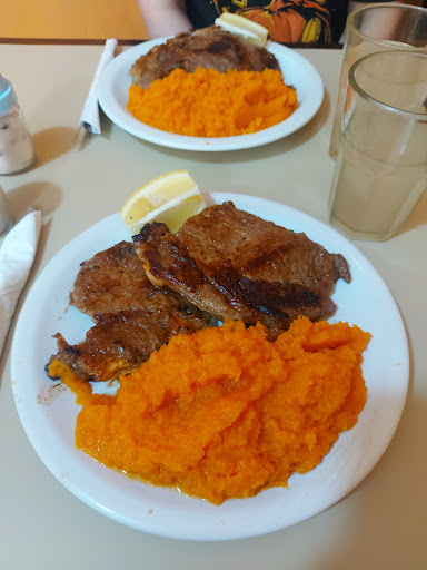 Es Excelente! Se come abundante, la comida es sabrosa. Entramos un poco decepcionados porque muchos lugares que están cerca ofrecen el mismo menú y te traen muy poco. Pero este lugar es la excepción. Fue muy bueno. Pedimos bife de chorizo acompañado de puré de calabaza. Además te dan botella grande para pedir, cuando en la mayoría de lugares no te dan nunca la botella grande. Recomendable para venir a comer en familia o con amigos.