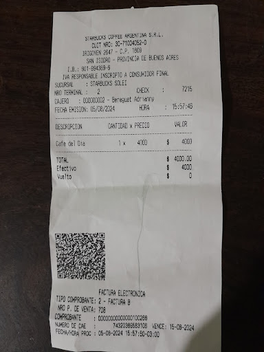 Fui ayer sólo a buscar un café grande antes de entrar al cine, y el mal trato q recibí x parte de un empleado llamado Adrianny no tiene nombre, soberbio, maleducado, quería saber q diferencia había entre el café de filtro y el de máquina (en cuanto al sabor, tipo de café, variedad etc) y me contesta q ya me lo había dicho, q uno era de filtro y el otro de máquina, después quise pagar con Modo y me dijo q no se podía, solo Mercado Pago, al querer hacerlo, q le tenía q dar un código, q mostrarle el QR etc me dio tantas vueltas q pagué en efectivo, nunca me preguntó si tenía la tarjeta de Starbucks, lo cual sí tengo pero ya con el trato q recibí ni ganas de decírselo. Por lo general voy al local de Unicenter donde siempre nos tratan de 10 y los empleados están bien capacitados, ahora entiendo por qué el local de Soleil está...