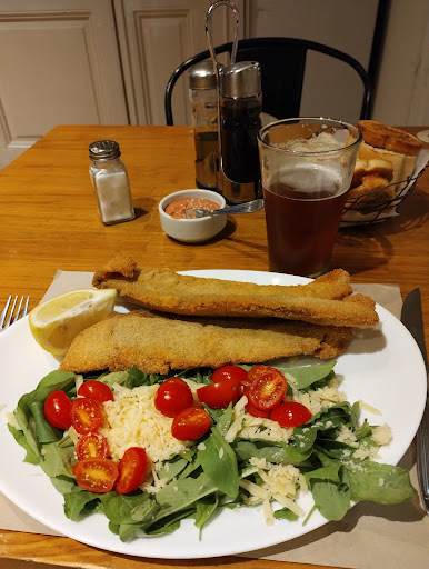 Me gustó todo mucho ☺️💕 Pedí filet de merluza con ensalada: la porción extra gigante, muy buen pescado y empanado a la perfección (nada aceitoso). La ensalada de rúcula, parmesano y tomates Cherry súper fresca, 🥗 los aliños de buena calidad. La bebida la acompañan con una panera de tostaditas y pan fresco, con un dip de hummus gourmet muy divertido y delicado. La cerveza tirada nada de otro mundo, pero está bueno que tengan esa opción. Excelente atención de la camarera, ágiles en traer el pedido. Cómo sorpresa curiosa: los precios con números chistosos, nada termina en "00", será alguna técnica de marketing o no, pero con la inflación actual es chistoso ver esa atención a las cifras. ✅ Sin lugar a dudas volveré cuando esté...