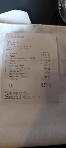Read moreFuimos domigo 5-2-2023 para almorzar, realmente lo dude al.principio por algunas opiniones, pero decidimos ir almorzar . No me arrepinento en absoluto , el lugar es muy agradable, ameno, càlido ,es un placer sentarse porque la mesa esta muy bien preparada, pedimos una burrata que me sorprendiò porque esta servida con un gaspacho de tomate, melon, cerezas ,sabor muy rico diferente a como venia comiendo la burrata. Deliciosa y excelente sabor y combinacion. Plato principal un asado ( que se cortaba con cuchara) guarnicion boniato con muy rico sabor , tres menues de pescado acompañados con ensalada de hojaa verdes, otro venia con pure muy sabroso . Volveria . Excelente...
