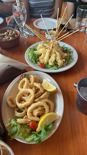 Read moreFui con mí familia (4 personas) pedimos dos latas de cerveza, dos aguas, media porción de rabas, dos wraps con ensalada guarnición, un lenguado al Roquefort y tallarines c salsa mixta. La camarera muy amable nos trajo rápido las bebidas bien frías, luego una señora que estaba en la barra nos trajo las rabas (9 rabas en una casuelita era la media porción.......)Luego de un tiempo más que prudencial un tercer camarero nos trajo la comida, los wraps vinieron con fritas y ante la observación nos cambiaron rápidamente la guarnición, pero los wraps estaban literalmente helados. El "lenguado al Roquefort" resultó ser la cola recortada de un pescado con piel y lleno de espinas con pedacitos de Roque semi derretidos como preparación y con una guarnición correcta de papas fritas pero más abundante que el pescado con piel y espinas que sirvieron en lugar del lenguado sin dar explicaciones. Fiasco total y caro (Todo 97000 pesos) . Olvidable, sobre el final la camarera amabled del comienzo nos dijo que ella había tomado bien la comanda pero se equivocaron al sacar los wraps......