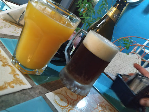 Comida: pedimos una fondue de queso (venia con hongos, tomates cherry, papas al horno y cuadraditos de pollo), un licuado, una cerveza (tienen una marca artesanal, se llama Eisenbrucke) y una marquise