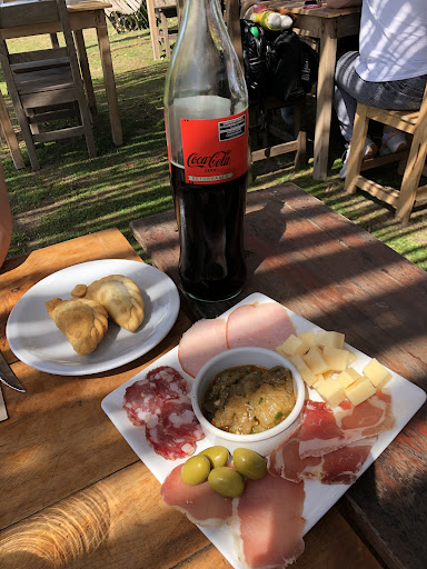 Mi pareja y yo decidimos ir a este lugar dado que varias personas nos lo recomendaron, por lo tanto reservamos por whatsapp para el turno de las 12hs del día sábado. El predio es hermoso, la parte de adentro del restaurante donde están las mesas se nota que está hecho todo nuevo al igual que los baños, la limpieza de todo el lugar es excelente. Elegimos una mesa afuera dado que el clima estaba excelente y nos atendió una moza divina, se llamaba Agustina. Para comenzar nos trajeron una panera, con una confitura/mermelada de tomate y romero que realmente estaba exquisita, el pan estaba fresco. Luego nos trajeron dos empanadas pequeñas de carne fritas, estaban realmente muy buenas, suaves y para nada grasosas, inmediatamente después nos sirvieron una pequeña picada que constaba de salamín, queso, lomo y bondiola de cerdo, jamón crudo, berenjenas en escabeche y aceitunas, el fiambre excelente, súper fresco. Como principal elegimos parrilla (que era libre), nos trajeron vacío, asado, chinchulines, chorizo, morcilla, pechito de cerdo, riñón, calabaza, papa y batata también a la parrilla, como guarnición elegimos papas fritas y ensalada de tomate. La parrilla estuvo correcta, quizás el punto de la carne nos hubiera gustado más jugoso o los chinchulines más crocantes pero luego pedimos una segunda porción de carne y esa sí vino jugosa, el chorizo era muy rico, suave y los riñones estaban muy bien hechos, las papas fritas muy bien fritas, se notaba que el aceite estaba nuevo. De postre elegimos almendrado y frutillas a la crema, ambos riquísimos. Si bien elegimos el primer turno, de las 12hs, nunca nos apuraron a pesar que a las 14hs era el siguiente turno, pudimos comer a nuestro ritmo y hacer sobremesa. Pasamos el resto de la tarde dentro del predio tirados en el pasto o disfrutando en las hamacas paraguayas. A las 16hs nos dieron tortas fritas, muy ricas y nos recargaron el agua caliente del termo para tomar mate. La verdad fue una experiencia excelente para pasar el día con pareja, amigos...