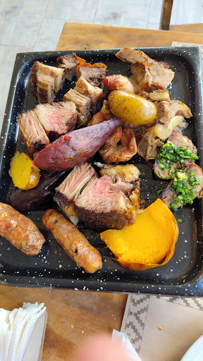 Read moreLamentable experiencia el día Domingo. No es la primera vez que voy, sino la 5 o 6. La verdad siempre estuvo bien. Ayer Domingo 9/3 fuimos con mi novio a almorzar habiendo reservado antes. El precio por adulto es de $26.000. Apenas llegamos igual que siempre, llega la picada, empanadas y bebida. El problema fue con la parrilla. El brasero con carne demoró más de 40 minutos desde que lo pedimos. Cuando llego literalmente contenía: 1 chorizo, 1 pedazo de vacío, 1 pedazo de cerdo con hueso y un pedazo de grasa con hueso que aspiraba a ser asado. Jamás nos trajeron la guarnición de papas y ensalada. La solicitamos a la encargada y a los pocos minutos trajo un plato de papas fritas tan blancas que algunas se encontraban crudas. Entendimos que estaban con mucha demanda, al terminar lo poco que nos habían traído le solicitamos a la moza reponer vacío y asado y unas papas que estén cocidas. Este pedido demoró UNA hora. Y llegó gracias a que lo volvimos a reiterar a la encargada. La moza de la mesa 24 (nuestra) parecía estar muy atenta a una mesa grande y otra de extranjeros, por los cual nos pasaba por al lado sin detenerse. Insisto, nuestra experiencia siempre fue buena, por eso volvemos. Además: en efectivo hay descuento y con cualquier otro medio de pago un 15% de recargo, ilegal no, ilegalisimo. Si no dan abasto con esa cantidad de cubiertos la solución honesta es simple: no tomen esa cantidad de reservas. Sino no ofrezcan un servicio como “libre” si no lo pueden cumplir. Ayer fue un desastre en todo sentido:...