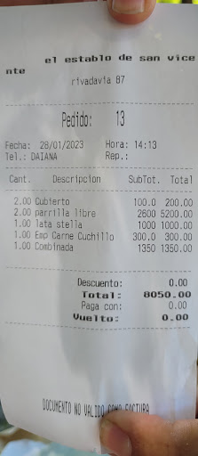 Read moreReservas y te toman seña de $500 por persona. Te atienden, te recomiendan no pedir mucha entrada porque el principal salía rápido y venía cargado en teoría... Entrada, bien... Pero el plato se demora 1 hora 20 minutos, en ese lapso cada vez que preguntas te dicen que ya sale... Terminas pidiendo unas empanadas para esperar, porque tenés hambre, te siguen diciendo que ya sale. Labure 10 años en gastronomía, no hablo porque sí... No sé le puede estar mintiendo al cliente de esa forma durante tanto tiempo. En algún momento tenés que decir, mirá, esto va a tardar tanto... Por último cuando te traen el plato, realmente me pareció paupérrimo... Cuando pido la cuenta me la traen sin el descuento de la seña...si pasa, pasa se ve... La comida estuvo bien, pero realmente el precio es muy elevado para lo que es... En comparación a otras parrillas de la zona. Por eso mí...
