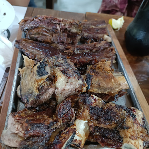 La comida viene con fórmula tenedor libre, comenzando con una tabla de quesos y jamón, empanadas fritas y papas fritas caseras. La carne se sirve en platos calientes aptos para compartir. Se traen porciones generosas y los invitados pueden pedir más, para cada corte específico. Sirven chinchulines (tripa delgada a la parrilla, excelente), chorizo, morcilla, lechon, vacío de res, costillas de res, con ensalada. El postre está incluido.