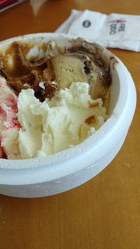 El helado de dulce de leche estaba cristalizado, lo que indica que se derritió y lo volvieron a congelar, afectando completamente su textura y calidad. Además, un detalle molesto fue que no había servilleteros en las mesas, solo en el mostrador, y no permitían llevarlas a la mesa, lo que hizo la experiencia aún más incómoda.