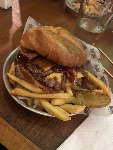 Read moreEl lugar sin grandes lujos pero lindo, limpio. Estilo cerveceria/hamburguesería son sillas y mesas de metal y madera. No pude sacar fotos, pues me habia quedado sin bateria y deje el telefono en el hotel. Tiene mesas afuera, abajo y arriba (es cerrado) La que viene con salsa criolla tiene un 10! Tambien pedimos impeke2 tiene champiniones y cebolla caramelizada. De toda la carta de hamburguesas se puede pedir con uno o dos mdallones de carne, que son de tipo artesanal. La limonada ($500) es un vaso gigante que se puede compartir. Baños: no fui. Conclusion: si andas con ganas de hamburguesas buenas...
