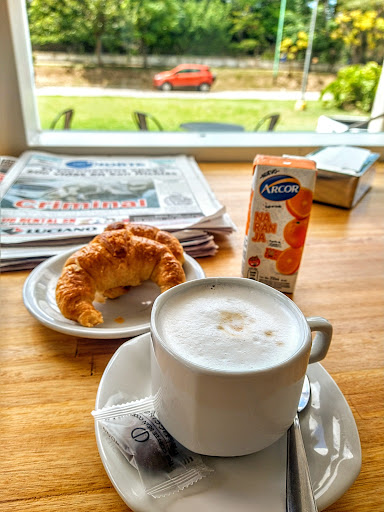 Fuimos a merendar. Tomamos la merienda de campo que incluye café, dos tostadas con queso untable y mermelada, y un jugo de naranja. El café era rico, sabroso y para nada fuerte. Las mermeladas bien, no excelentes pero ricas, una de arándanos y otra de pera. Las tostadas eran de pan de molde pero no lactal, quizás de las varias panaderías de la zona. Buenas rodajas, con semillas, esponjosas y sabrosas. Los juguitos eran Arcor en mini cajita. Si bien no eran exprimidos, al menos no venían servidos en vaso como si lo fueran así que agradecemos la sinceridad. En resumen una merienda rica, bien presentada. Punto extra por la atención de la chica, muy dispuesta...