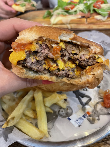 Hermoso lugar por donde se lo mire! Desde su exterior con todos los personajes y pinturas que tienen, hasta su interior - donde siguen los hermosos diseños - con una atención excelente. Fuimos con mi novio hoy a la noche. Llegamos temprano, a las 20:30 más o menos, nos atendió Ramiro con la mejor onda, contestó nuestras dudas aparte de comentarnos un poco la hermosa historia detrás de este restaurant. Un poco sabíamos porque había revisado las redes, pero haber leído cómo comenzó el restaurant sumado a lo que nos contaba Ramiro, fue muy impresionante. Quiero hacer una mención especial a la fuerza y dedicación de la familia de Lalo, seguramente él está super contento con lo que lograron. Con respecto a la comida: sin palabras. Una delicia todo lo que pedimos. Las hamburguesas estaban hechas a la perfección, super ricas y bien condimentadas. De postre nos pedimos una chocotorta para compartir y también estaba super rica, la porción era ideal. Quedamos más que satisfechos con la atención y con la comida, los precios la verdad es que son acordes a lo que sirven, así que todo excelente. Nos habremos ido a eso de las 21:30 y ahí ya se había llenado bastante el lugar, así que recomiendo ir temprano o, en caso de ir más tarde, ir con paciencia que la espera vale la pena. Felicitaciones a la familia de Lalo por tan hermoso proyecto llevado a cabo y muchas gracias a Ramiro por la buena onda y excelente atención! Les deseo una...