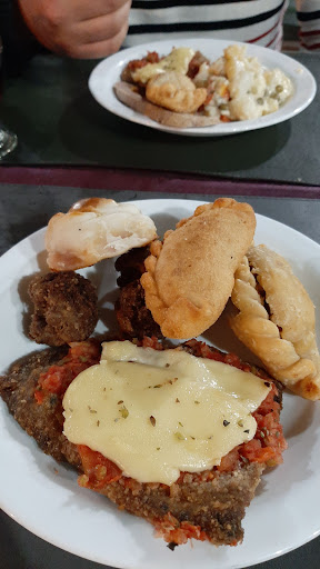 Read moreLa parrilla, que era mi 1er opción, casi mal. Costillas arrebatadas; chichu pasados por tenerlos arriba de una plancha para conservar su temperatura no controlada y se quemaron; riñón le faltaba; no me animé a los chori; me parece que hice bien porq 6 hs después de haber comido todavía no hice la digestión. Además todo soso, lo que es bueno para la salud, pero que un chinchulín sepa a dulzón y el asado a cartón no es para nada lindo. Lo bueno el pescado frito y la ensalada de fruta hecha con fruta fresca. Lástima que no pelaron las manzanas si no se hubiera llevado una medalla. El muchacho que hizo el show muy bueno y ubicado porque no convirtió un momento cuando uno quiere conversar en un boliche bailable y palma...