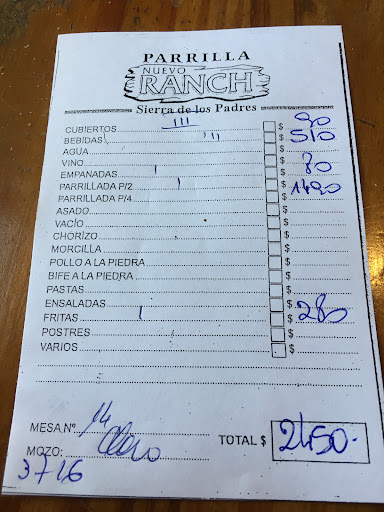 Read moreSi estás mirando reseñas para saber si concurrir a este lugar te dejo una que te va a servir: Fuimos con mi pareja y mi hijo de 2 años, nos guiamos por la puntuación de Google Maps que no refleja lo que es este lugar. El lugar parece estar ambientado a la antigua, pero eso no quita que podrían pintar las paredes, barrer los pisos, lavar bien los platos y cubiertos, etc. Pedimos una parrilla para 2 que en febrero 2025 salio $16900 (+ ensalada + bebida terminamos pagando $28.000 aprox), lo cual es un precio razonable para una parrila para 2 (aclaro que no viene con ensalada) el problema estuvo en que nunca nos avisaron que no tenían vacío y nos mandaron pechito de cerdo, pero nos avisaron cuando estaban sirviendo la bandeja, cosa de que no podamos decir que no. Venía con 2 empanads de entrada que estaban bien; la tira de asado era minúscula, el pedacito de pollo que mandaron ni hablar, una pequeña morcilla, un chorizo que estaba ok y chinchulines que estaban incomibles. El pechito de cerdo (que vino en lugar del vacío) era pura grasa. La verdad con esa parrilla no come ni 1. La atención fue ok. Otro dato importante es que no tienen en el menú más...